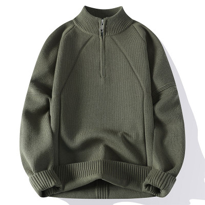 American vintage semi-turtleneck zipper sweater men's fall and winter